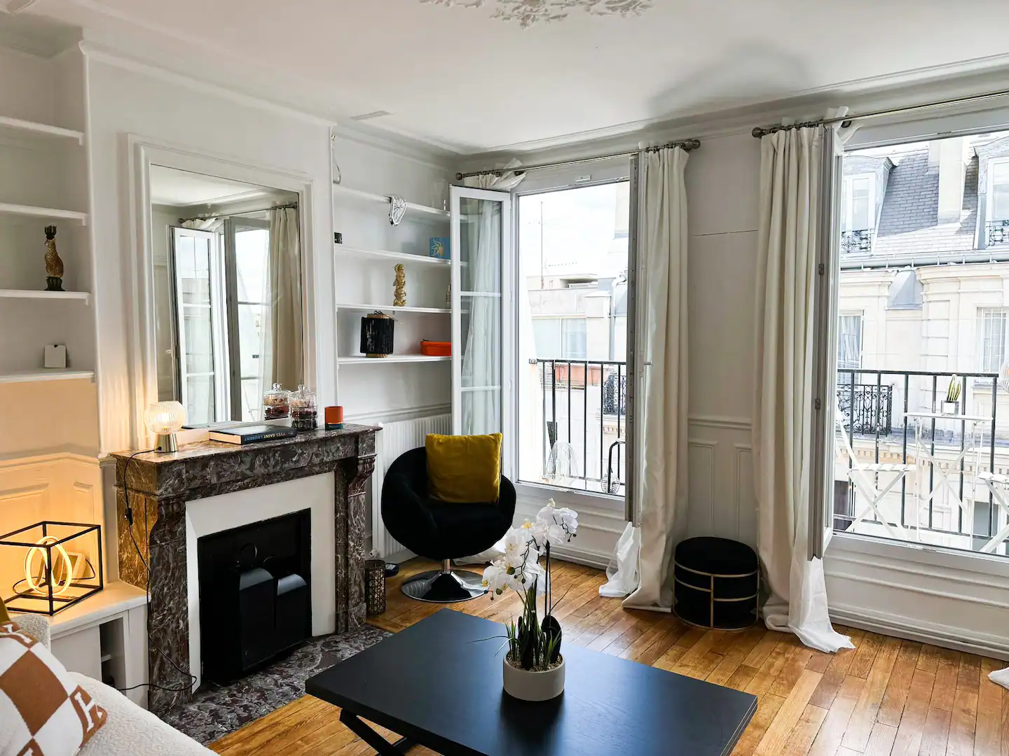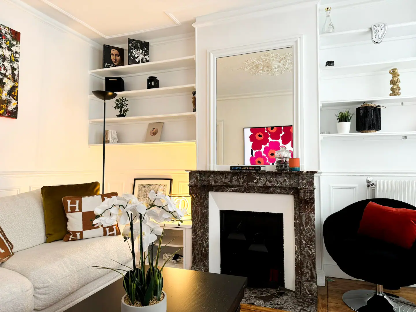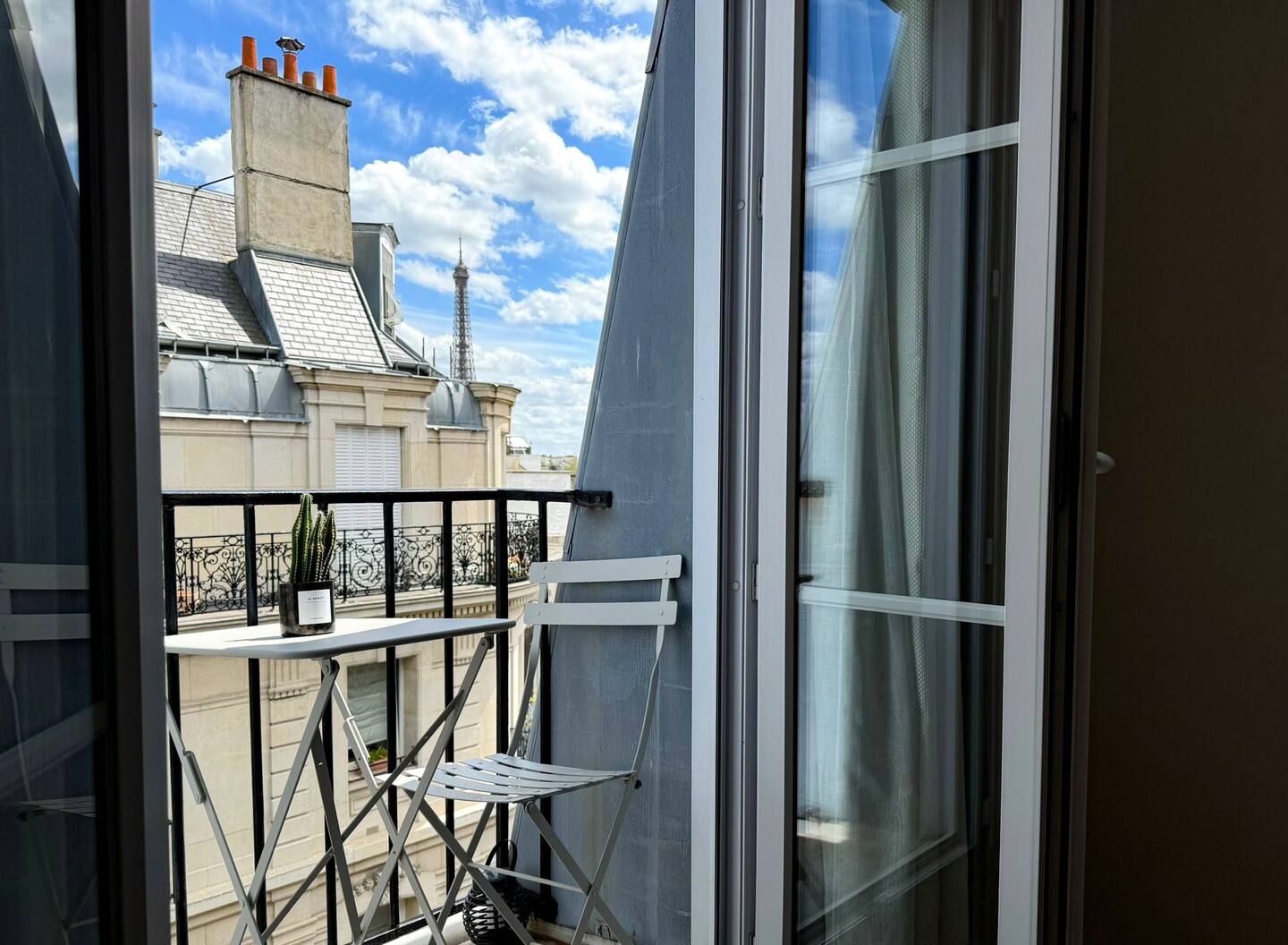 Notre appartement lumineux et raffiné vous séduira par son style haussmannien, ses finitions haut de gamme et sa disposition optimisée pour un confort absolu.- Le salon spacieux, décoré avec soin, dispose d’un canapé convertible haut de gamme pouvant accueillir deux personnes. Il s’ouvre sur deux petits balcons, parfaits pour un café au lever du soleil ou un apéritif face aux toits de Paris.- La chambre principale, élégante et chaleureuse, est équipée d’un lit king size de qualité hôtelière, d’une cheminée décorative, d’une télévision et d’un balcon privé avec une vue imprenable sur la Tour Eiffel.- La cuisine ouverte, moderne et entièrement équipée, comprend une plaque de cuisson, un four, un micro-ondes, une machine à café et tous les ustensiles nécessaires. Elle s’ouvre sur une salle à manger conviviale et élégante, idéale pour partager vos repas.- La salle d’eau contemporaine dispose d’une douche à l’italienne spacieuse et de rangements pratiques, pour allier esthétisme et confort.Conçu pour accueillir jusqu’à 4 personnes, cet appartement est le parfait équilibre entre charme parisien et prestations de standing, dans l’un des quartiers les plus prestigieux de la capitale.