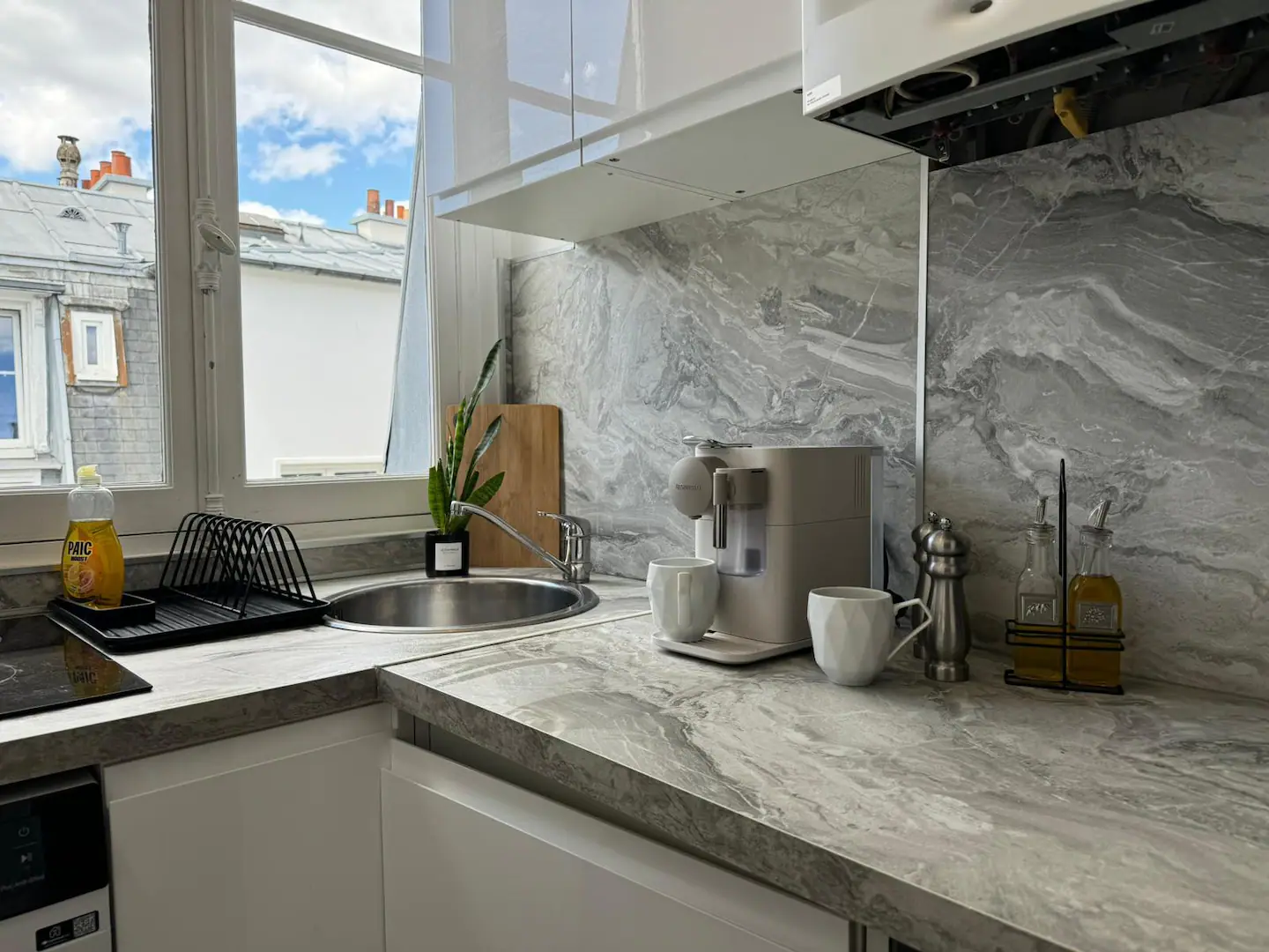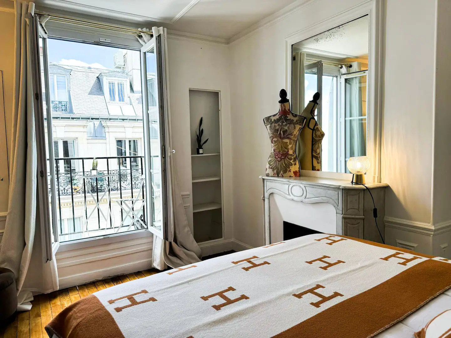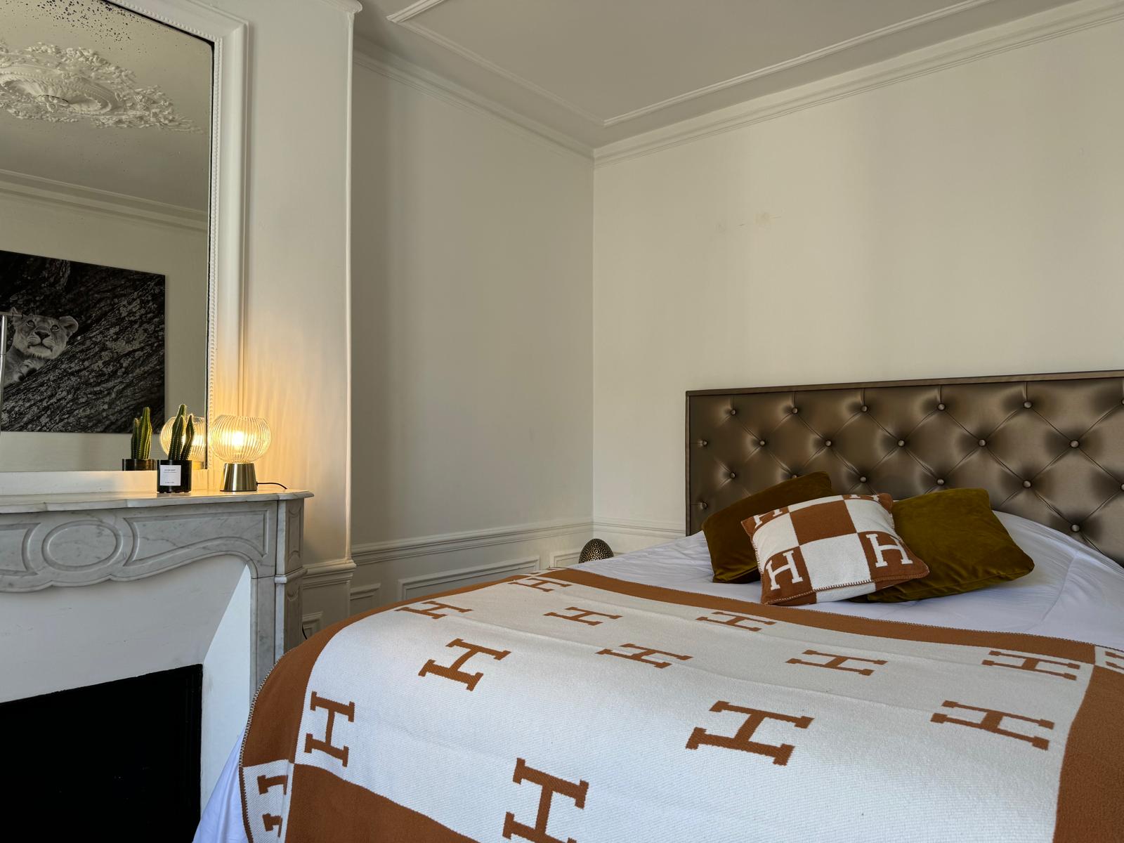 Notre appartement lumineux et raffiné vous séduira par son style haussmannien, ses finitions haut de gamme et sa disposition optimisée pour un confort absolu.- Le salon spacieux, décoré avec soin, dispose d’un canapé convertible haut de gamme pouvant accueillir deux personnes. Il s’ouvre sur deux petits balcons, parfaits pour un café au lever du soleil ou un apéritif face aux toits de Paris.- La chambre principale, élégante et chaleureuse, est équipée d’un lit king size de qualité hôtelière, d’une cheminée décorative, d’une télévision et d’un balcon privé avec une vue imprenable sur la Tour Eiffel.- La cuisine ouverte, moderne et entièrement équipée, comprend une plaque de cuisson, un four, un micro-ondes, une machine à café et tous les ustensiles nécessaires. Elle s’ouvre sur une salle à manger conviviale et élégante, idéale pour partager vos repas.- La salle d’eau contemporaine dispose d’une douche à l’italienne spacieuse et de rangements pratiques, pour allier esthétisme et confort.Conçu pour accueillir jusqu’à 4 personnes, cet appartement est le parfait équilibre entre charme parisien et prestations de standing, dans l’un des quartiers les plus prestigieux de la capitale.