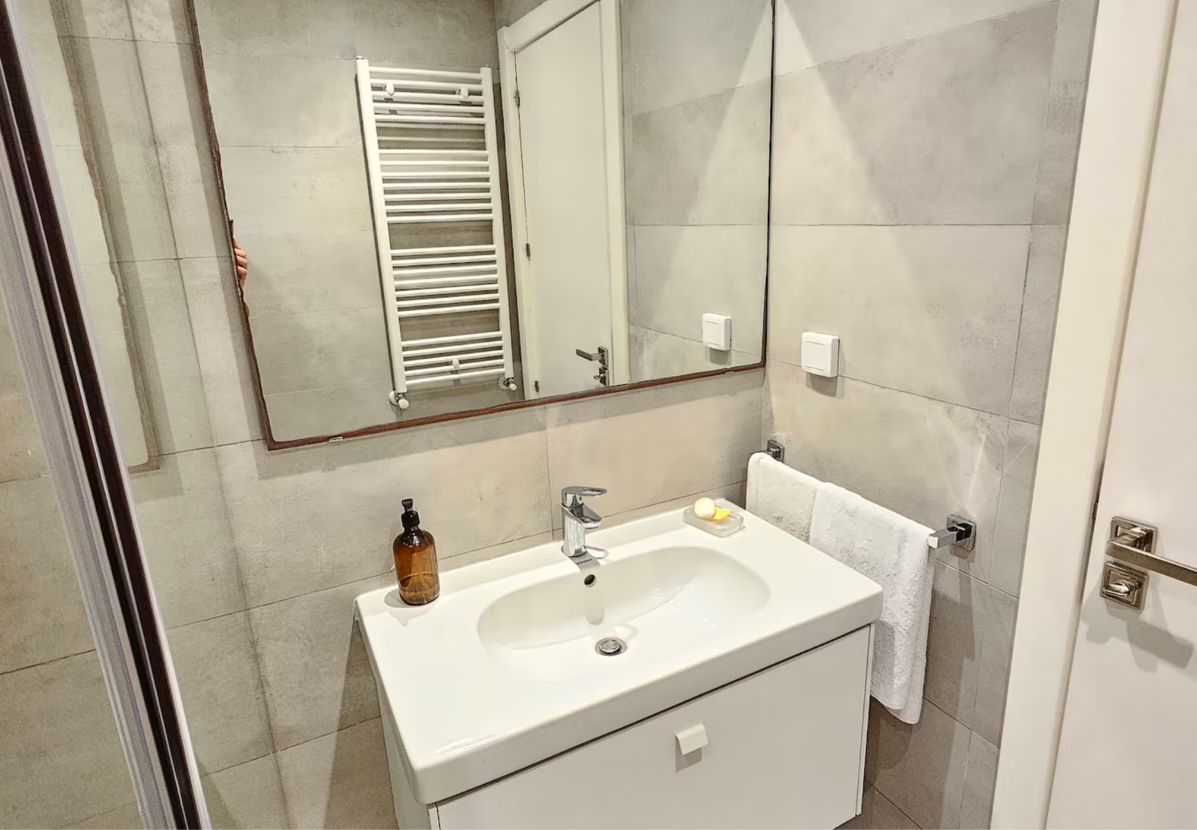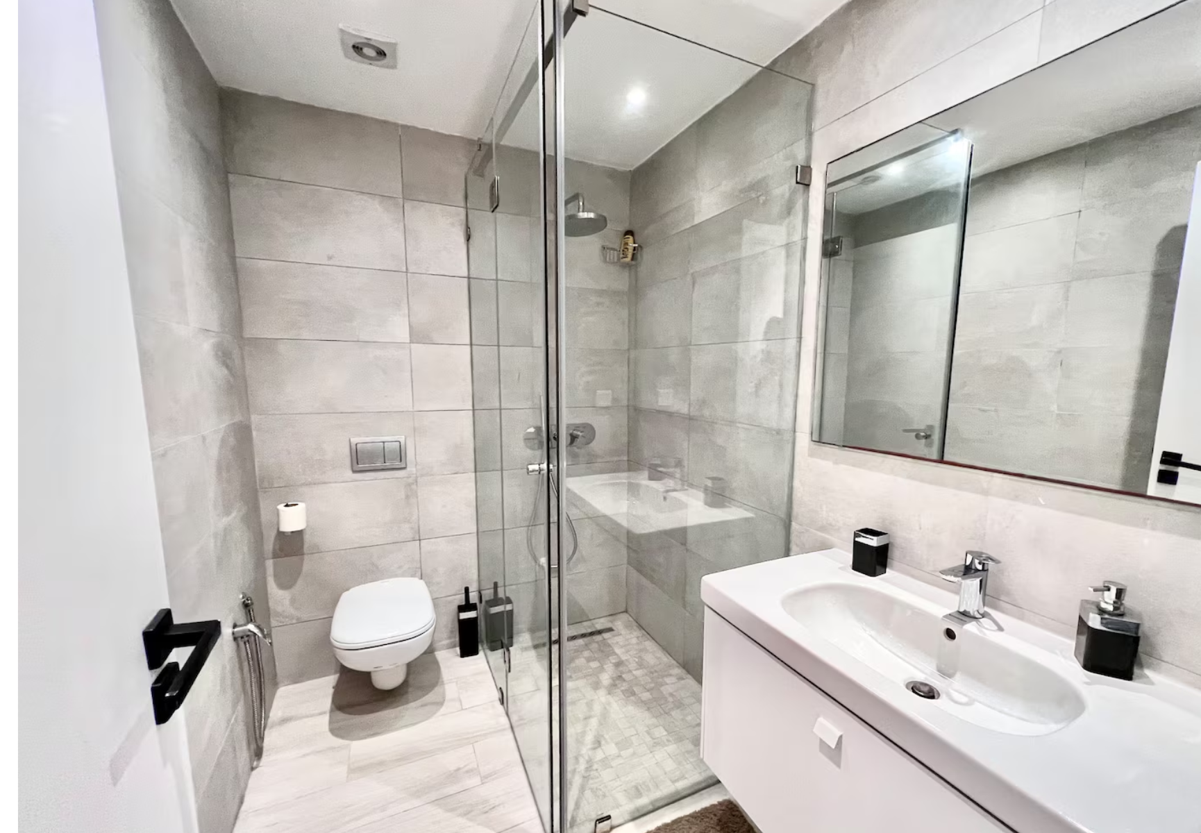 Une salle de douche moderne, fonctionnelle et parfaitement entretenue.