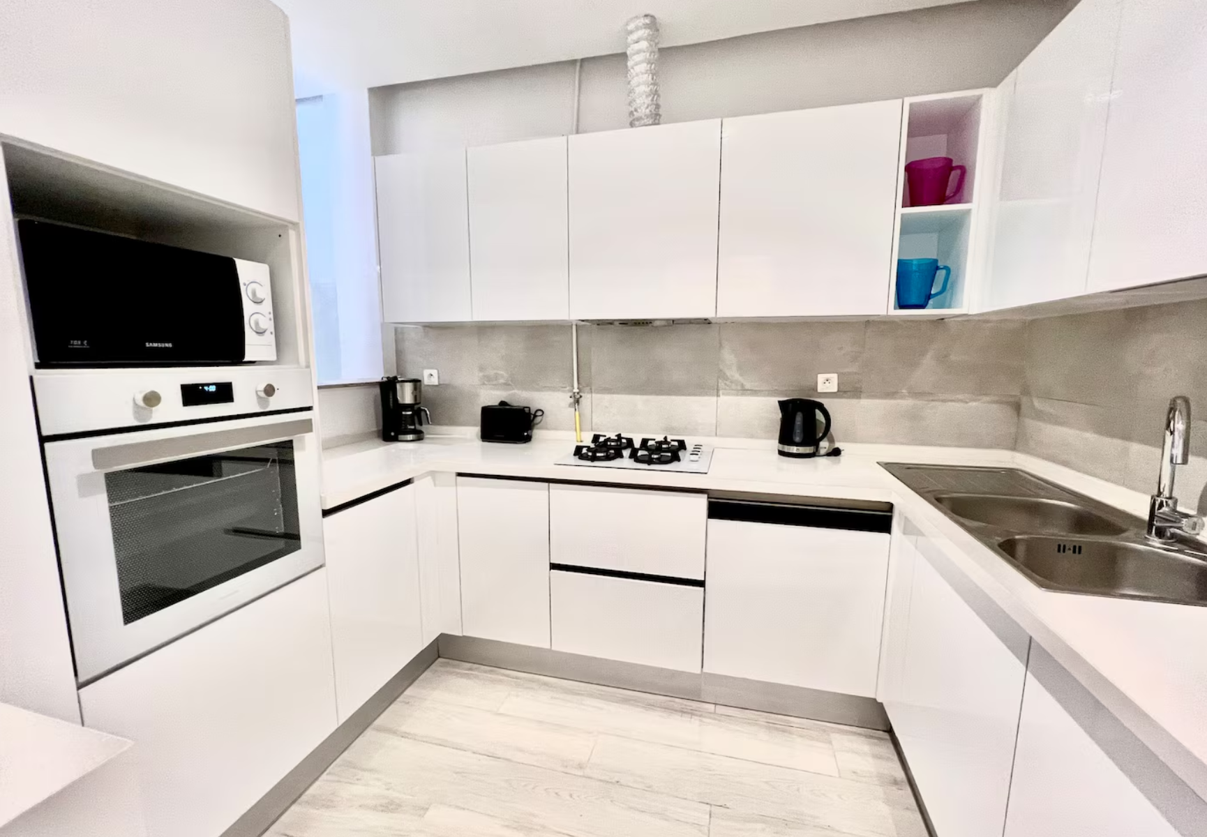 Une cuisine moderne et entièrement Ă©quipĂ©e (rĂ©frigĂ©rateur, four, micro-ondes, machine Ă cafĂ©, ustensiles de cuisine…) pour prĂ©parer vos repas comme Ă la maison.