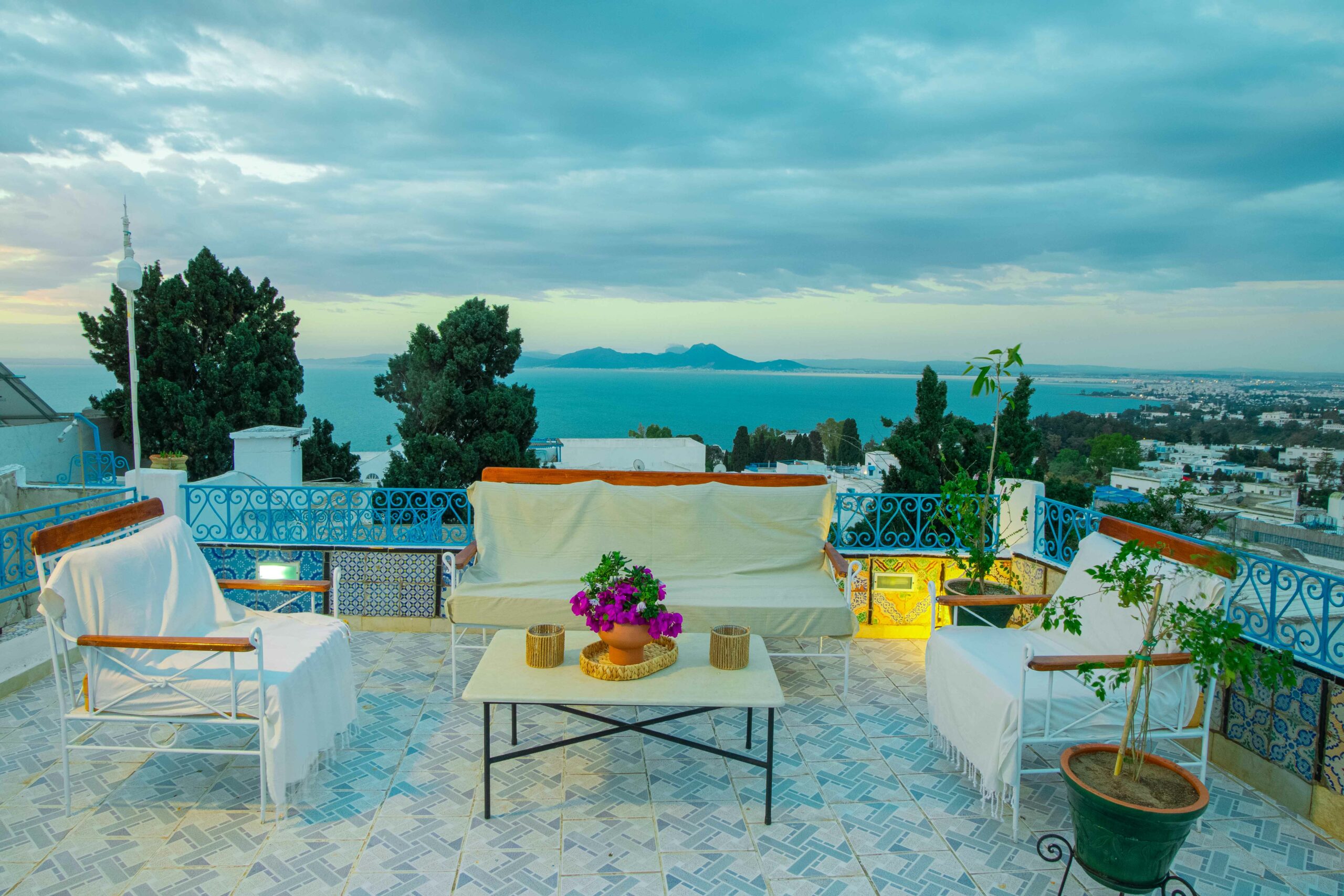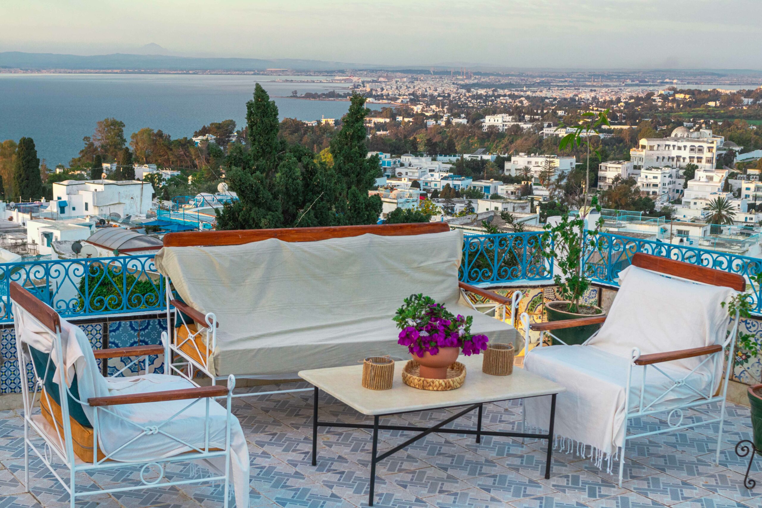 Découvrez notre villa de charme à Sidi Bou Saïd, un havre de paix avec une vue imprenable sur le village et la mer.Cette villa, avec ses deux terrasses panoramiques, son salon lumineux et sa décoration soignée, vous offre un cadre idéal pour un séjour inoubliable. Profitez de la vue spectaculaire tout en vous détendant dans un environnement calme et raffiné. Située à proximité des restaurants, galeries d’art et de la mer, cette villa vous permet de découvrir toute la beauté et la sérénité de Sidi Bou Saïd.