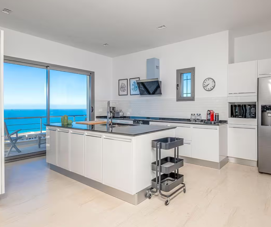 – Accès à la piscine, aux salons intérieurs et extérieurs, ainsi qu’aux cuisines entièrement équipées.