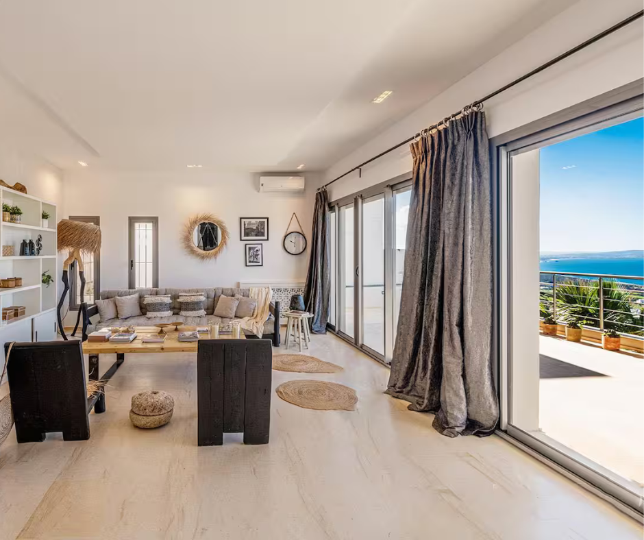 Notre villa d’exception offre un cadre calme et raffiné, idéal pour se détendre et profiter pleinement du charme naturel de Metline.- Les salons sont vastes et lumineux, parfaits pour se retrouver, discuter ou simplement se relaxer après une journée d’exploration.